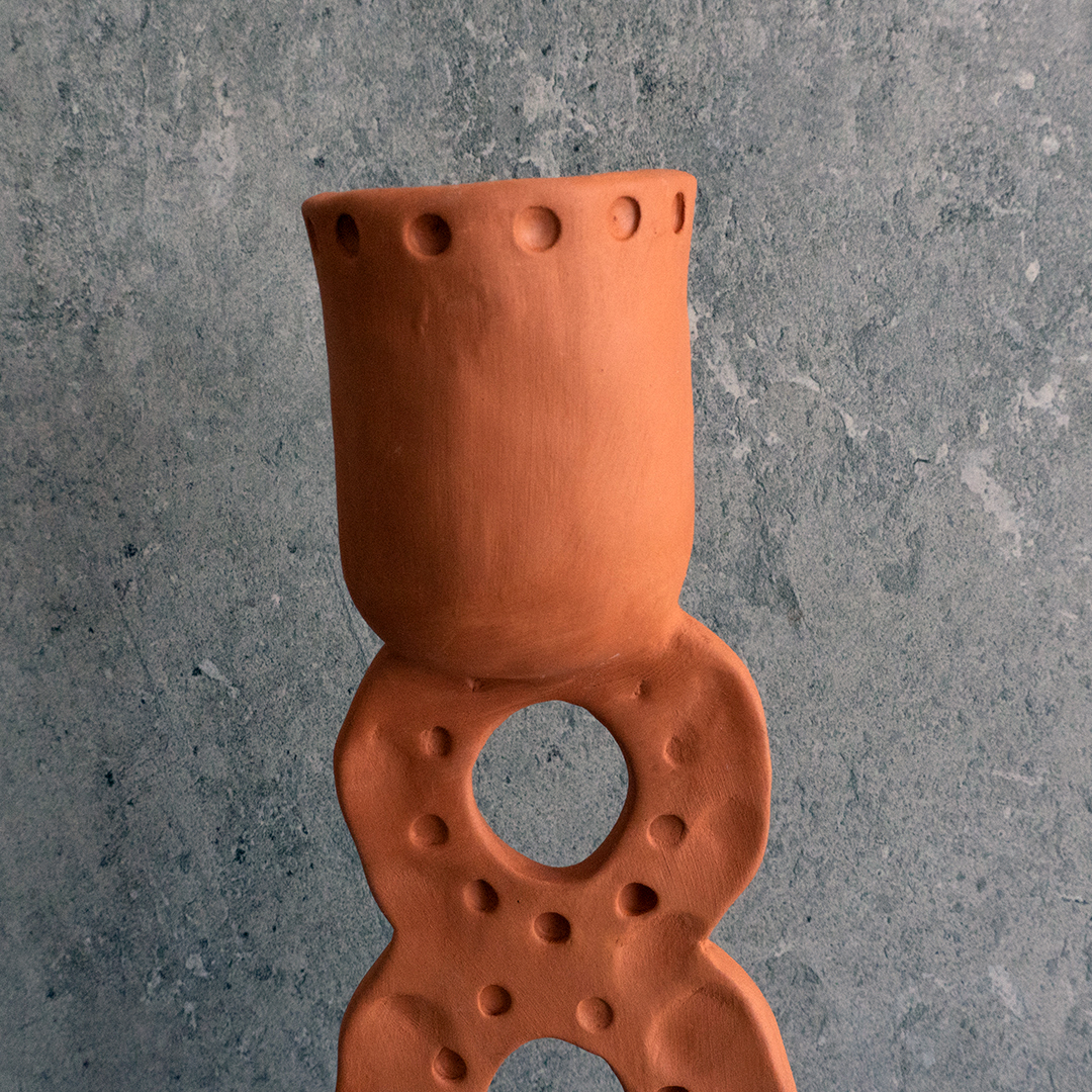 This candle holder is part of a limited edition collection, ensuring that each piece is unique. Its timeless, modern design blends seamlessly with various interior styles, from contemporary to rustic. The sturdy, organic texture of the terracotta adds warmth and texture to any space, while its minimalist form ensures it remains a statement piece that won’t overwhelm its surroundings.