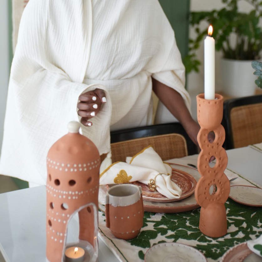 The ELEVATED STATEMENT CANDLE HOLDER is a striking piece that combines artistic expression with functionality. Handcrafted from high-quality terracotta, this candle holder boasts an organic feel with bold yet minimalistic lines. Its elevated design adds height and presence, making it the perfect addition to any table, shelf, or mantel.