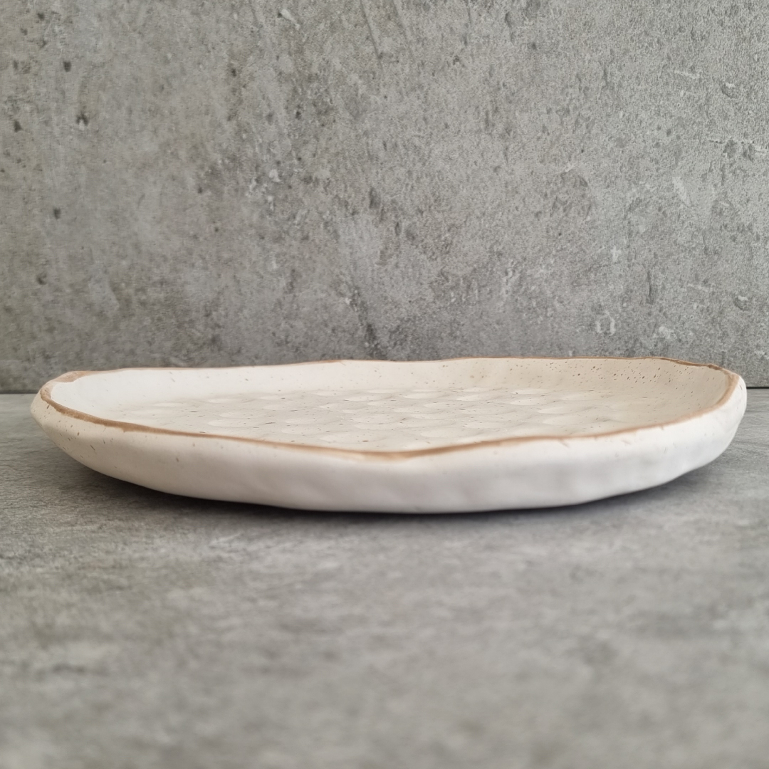 Made in Jordan, our work supports sustainable, artisan-made products while enjoying a beautiful, functional piece that brings warmth and charm to your home. To complement this white plate, explore our handmade small plate or textured serving dishes, all crafted with the same attention to detail.