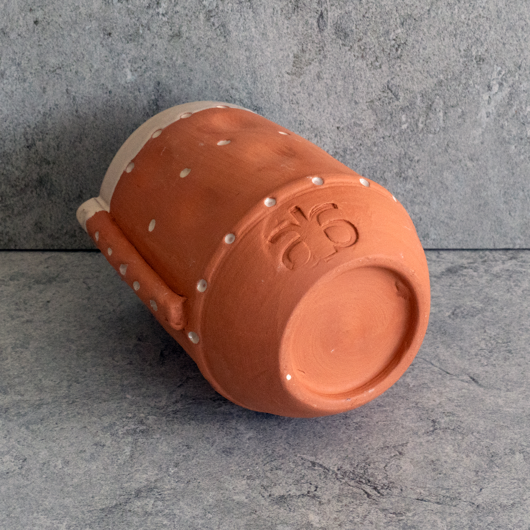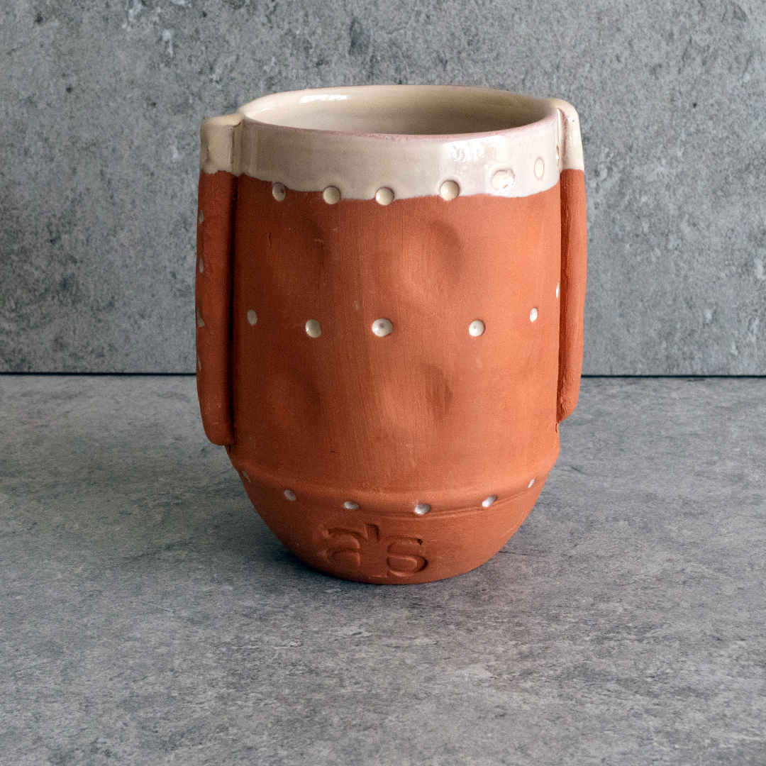 The ORGANIC EAR CUP is more than just a vessel for your favorite beverage; it’s a hand-sculpted terracotta piece that celebrates the art of mindful drinking. With its distinct ear-shaped handles, this cup is a joy to hold, offering a unique tactile experience that enhances the pleasure of every sip. The subtle off-white glaze contrasts beautifully with the natural terracotta body, adding a soft, elegant touch to its earthy design.