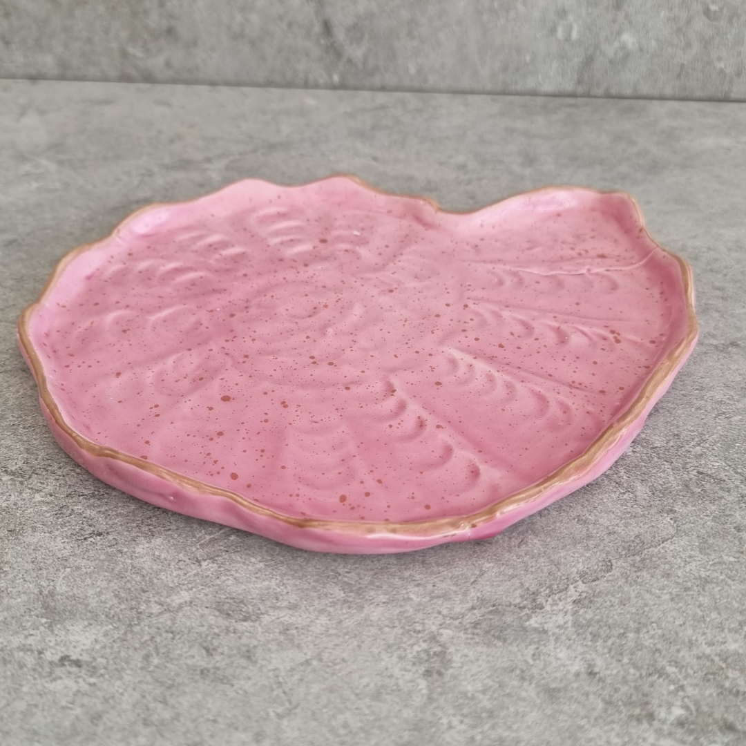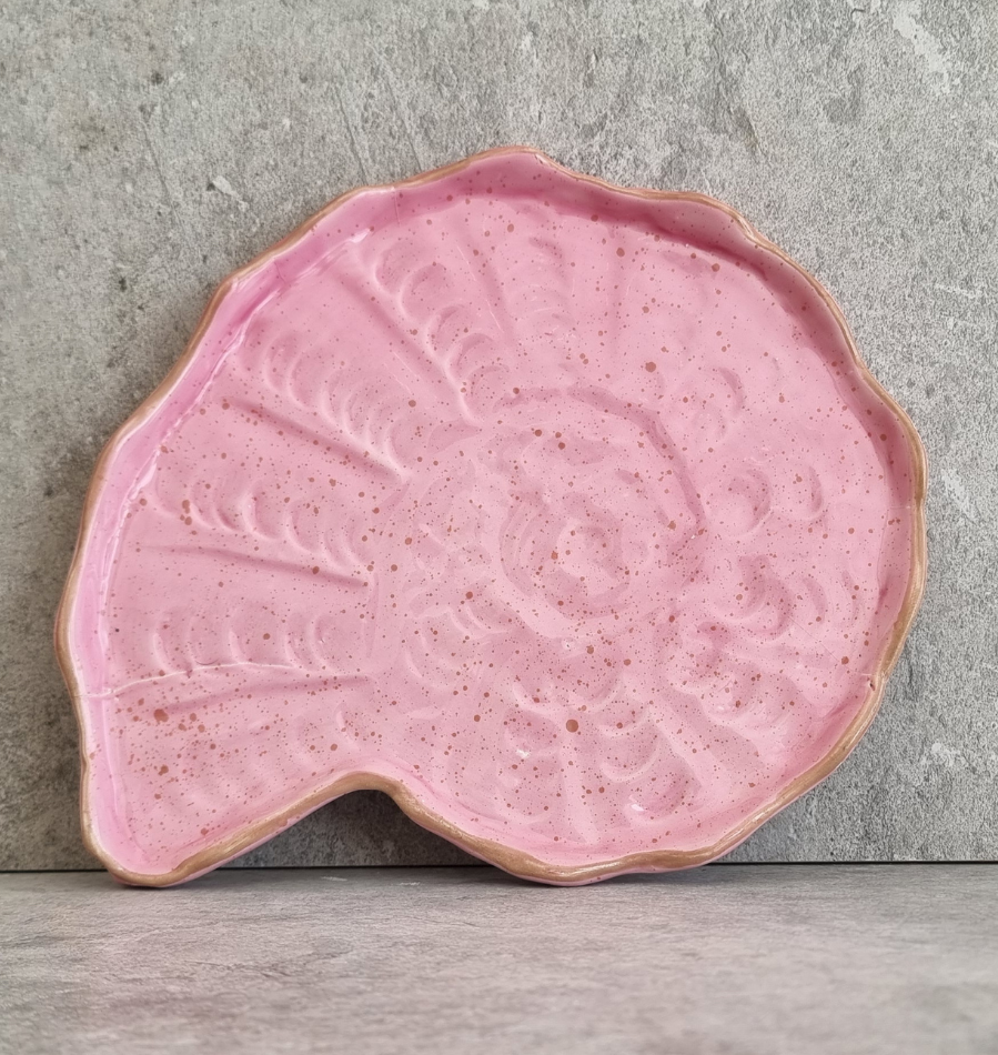 - Décor Accent: When not in use, the Sea Snail Plate doubles as a decorative accent. Display it on a kitchen shelf, a dining room wall, or even a side table to add a pop of color and elegance. Pair it with the Tall Coral Vase – Pink to create a cohesive cosmic theme throughout your home.